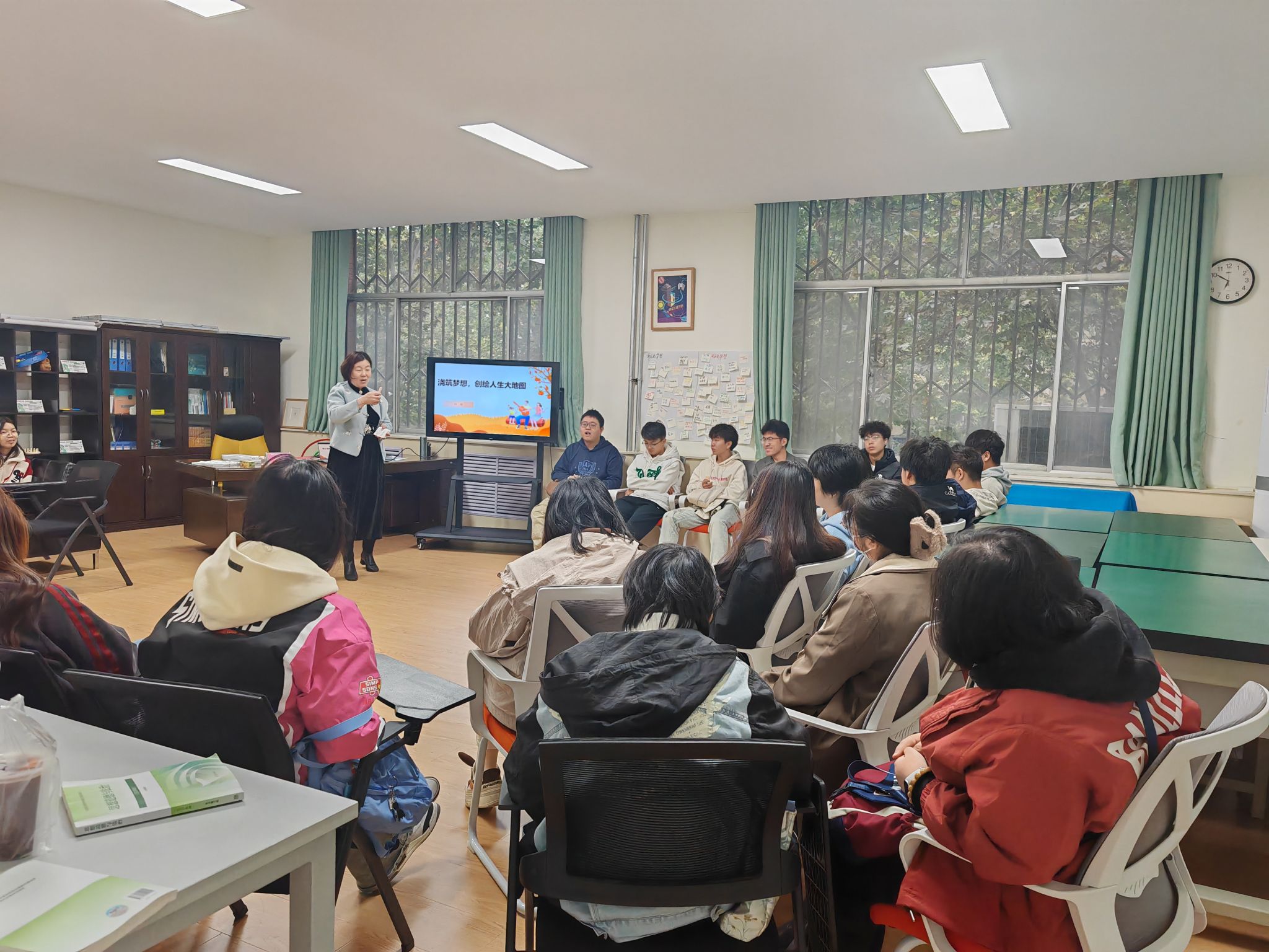 本次活动以“浇筑梦想,创绘人生大地图”为主题,利用生涯团体辅导的技术深入浅出地讲解了职业生涯规划的重要性及具体方法。通过有趣的活动,引导同学们思考自己的职业兴趣、职业能力和职业目标,鼓励大家结合个人职业价值观,制定切实可行的职业生涯规划。